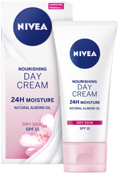 NIVEA Nourishing Day Cream är en dagkräm utvecklad för att vårda torr hud. Formuleringen med NIVEA Moisture Care Complex och mandelolja återfuktar huden intensivt i upp till 24 timmar och balanserar hudens egen fuktnivå. Niveas ansiktskräm ger näring på djupet och jämnar ut huden, samtidigt som den skyddar från yttre påfrestningar. Innehåller SPF 15 för att ge ett visst skydd mot skador orsakade av solen. Vegansk formulering (fri från animaliska ingredienser). Dermatologiskt testad.