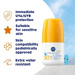 NIVEA SUN Kids Sensitive Sun Roll-On SPF50+ är ett solskydd i roll-on-format med mycket högt solskydd för barnets hud. Nivea Sensitive Sun Roll-On är oparfymerad och är framtagen för att passa barns känsliga hud. Solkrämen är extra vattenresistent och ger ett omedelbart skydd mot UVA- och UVB-strålar. Att det är en roll-on gör solkrämen enkel att applicera.