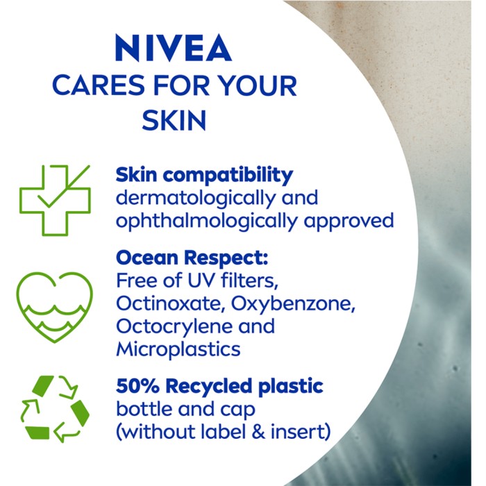 UV Face Invisible Daily Fluid har en ultralätt formulering som inte känns fet eller kladdig. Innehåller niacinamid och är osynlig på huden oavsett hudton. Har en mattade effekt i 8 timmar och ger en återfuktad känsla. Snabbabsorberande och mild formulering som passar alla hudtyper, även känslig hud. Passar för daglig användning och kan användas under smink. Innehåller NIVEAs Ocean Respect-formulering som är fri från UV-filtren octinoxate, oxybenzone och octrocrylene.