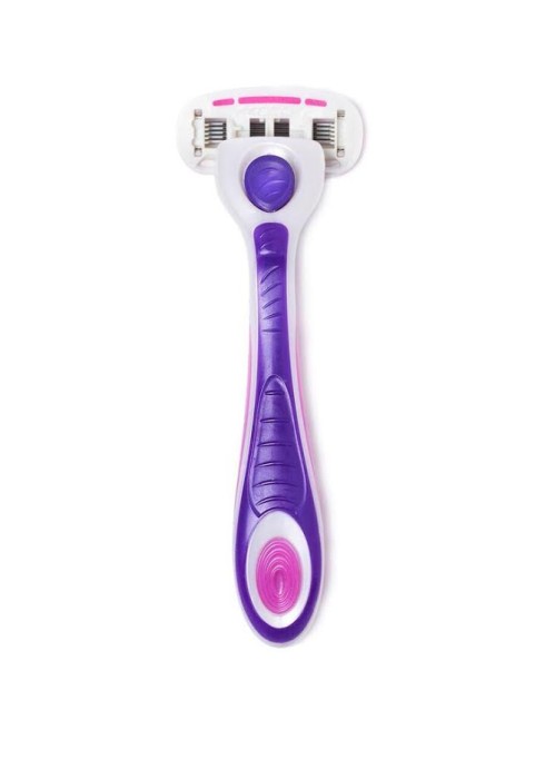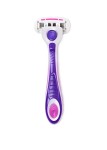 Hållare som passar att ha i duschen medföljer. De fembladiga rakbladen är utbytbara, ett blad medföljer.