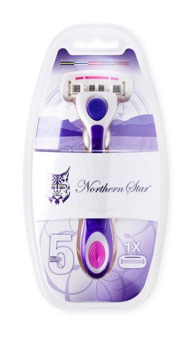 Northern Stars rakhyvel är en greppvänlig hyvel med strips med vitamin E och aloe vera som mjukgör och lugnar huden. Passar för känslig hud.