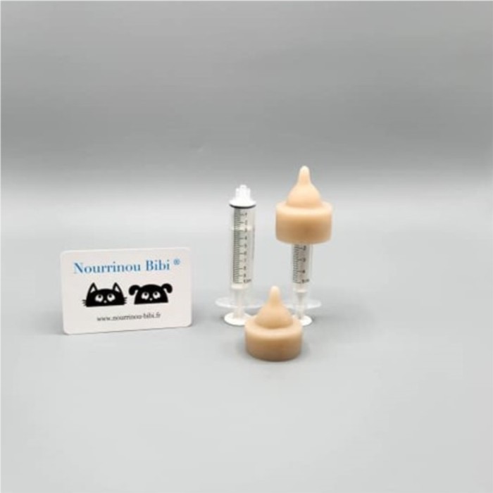 Kitet innehåller silikonnappar med luer-lock-sprutor som ger ökad säkerhet vid stödmatning. Silikonringen ger ett jämnt och säkert flöde. Du riskerar inte att flödet blir för snabbt. Napparna är tillverkade av medicinskt silikon och de olika storlekarnas flöden är anpassade till vikten på valpar. Ett ergonomiskt utformat kolvgrepp och cylinder ger ett säkert grepp om sprutan.