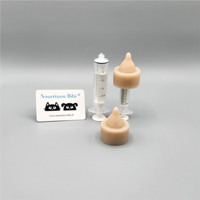 I kitet finns silikon-nappar med luer-lock-sprutor som ger ökad säkerhet vid stödmatning. Silikonringen ger ett jämnt och säkert flöde. Du riskerar inte att flödet blir för snabbt. Napparna är tillverkade av medicinskt silikon och de olika storlekarnas flöden är anpassade till vikten på valpar. Ett ergonomiskt utformat kolvgrepp och cylinder ger ett säkert grepp om sprutan.