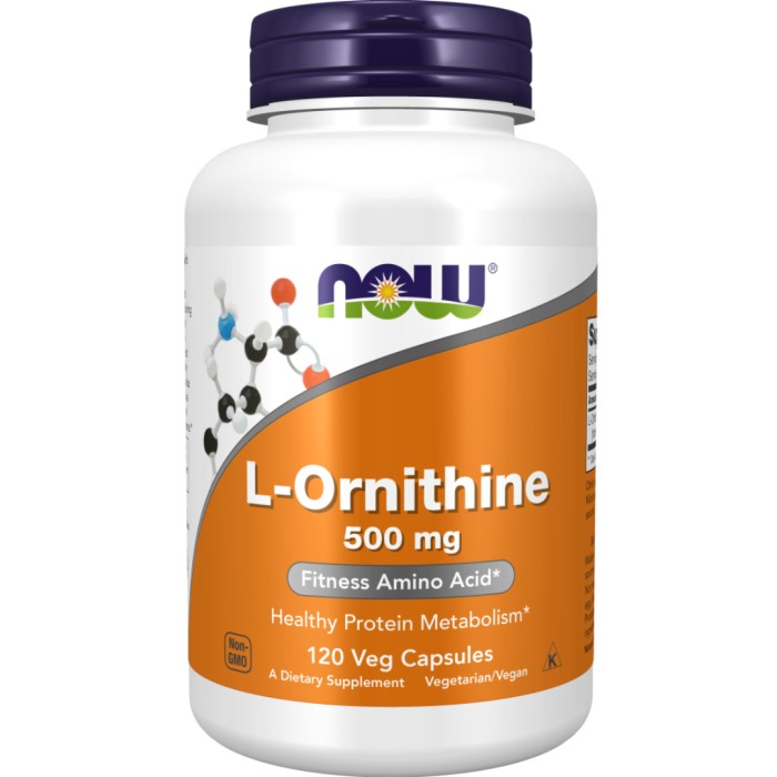 NOW Ornithine 500 mg är ett kosttillskott med aminosyran ornitin i kapslar.