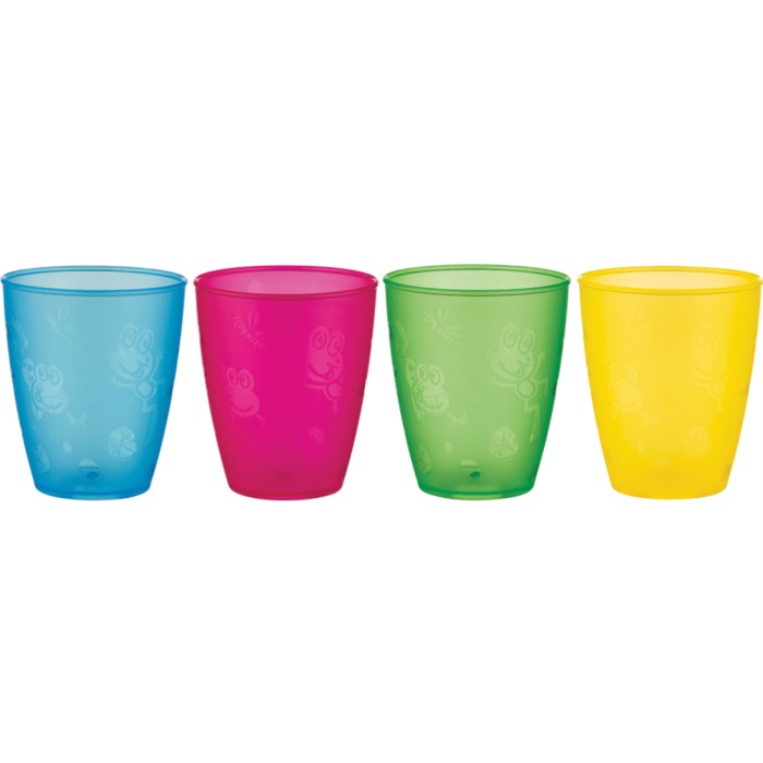 4 st färgglada, stabila plastglas som kan vara perfekta att ta med på utflykten eller använda hemma. Glasen kan användas i mikron, i frysen och kan maskindiskas.