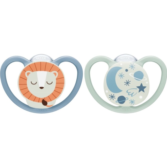 NUK Space Night är en ortodontiskt utformad napp som passar det lilla barnets anatomi. Ovansidan av sugdelen lägger sig mjukt mot gommen, och undersidan lämnar plats för tungans naturliga sugrörelser. Eftersom sugdelen är smal och platt blir det nästan ingen belastning på tänder, käke eller gom. NUK Space-nappen har en design med NUK Air System som gör att luften kan strömma fritt genom sugdelen, vilket gör att nappen behåller sin form när barnet suger. Designen gör nappen extra bra för barn med känslig hud. Skölden på nappen är formad som ett hjärta för att passa perfekt under barnets näsa.