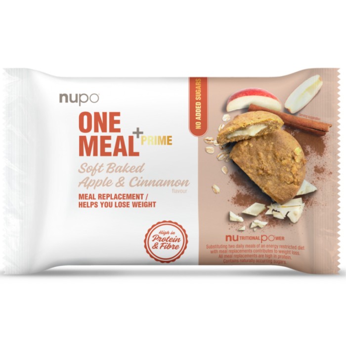 Nupo One Meal + Prime Soft Baked Apple & Cinnamon är en bakad måltidsersättningsbar för viktminskning och viktkontroll – utan tillsatt socker. Detta är en måltidsersättning med äppel & kanel-smak. Innehåller sötningsmedel. 244 kcal.