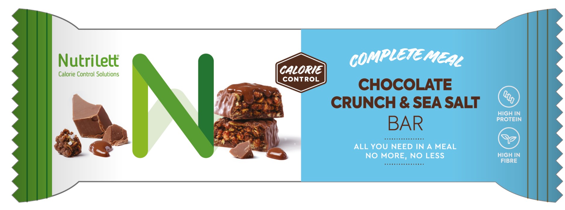 Nutrilett Crunch är baren för dig som gillar en blandning av sött och salt. Den är fylld med krispig choklad och innehåller ett stänk av havssalt, och är täckt med mjölkchoklad.