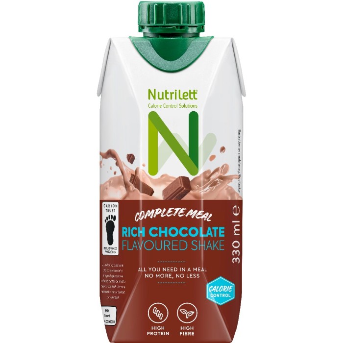 Nutrilett Rich Chocolate Shake är en chokladdryck för viktkontroll. Shaken har en rik chokladsmoothie-smak och kan användas som måltidsersättning. Kan ersätta en eller två måltider per dag. En shake innehåller endast 210 kcal.