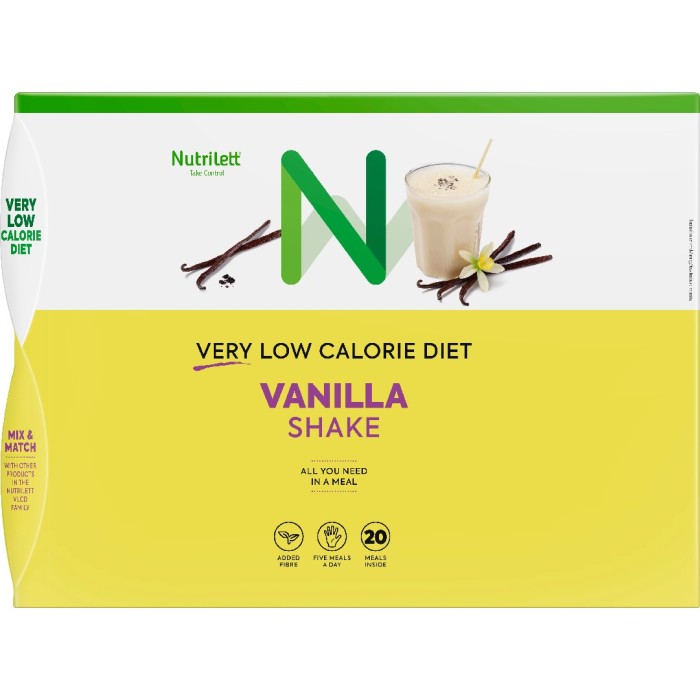Nutrilett VLCD Shake (Very Low Calorie Diet) med vaniljsmak. Pulvret har ett mycket lågt energiinnehåll och används för viktkontroll. Du ersätter alla måltider med 5 portioner per dag och får då i dig alla vitaminer och mineraler kroppen behöver. Produkten kan användas i upp till 8 veckor. Tänk på att dricka rikligt med vatten under dieten.