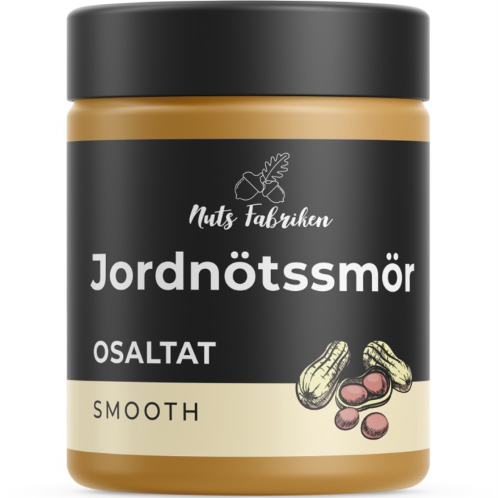 Nuts Fabrikens osaltade släta jordnötssmör i en burk med 1 kg, för dig som verkligen gillar den lena och nötiga smaken av jordnötssmör. Detta jordnötssmör är tillverkat av noga utvalda jordnötter och har en len konsistens som smälter i munnen. Utan tillsatt salt. Du kan använda det som ett smörgåspålägg, i smoothies eller i dina favoritrecept för en krämig smak.