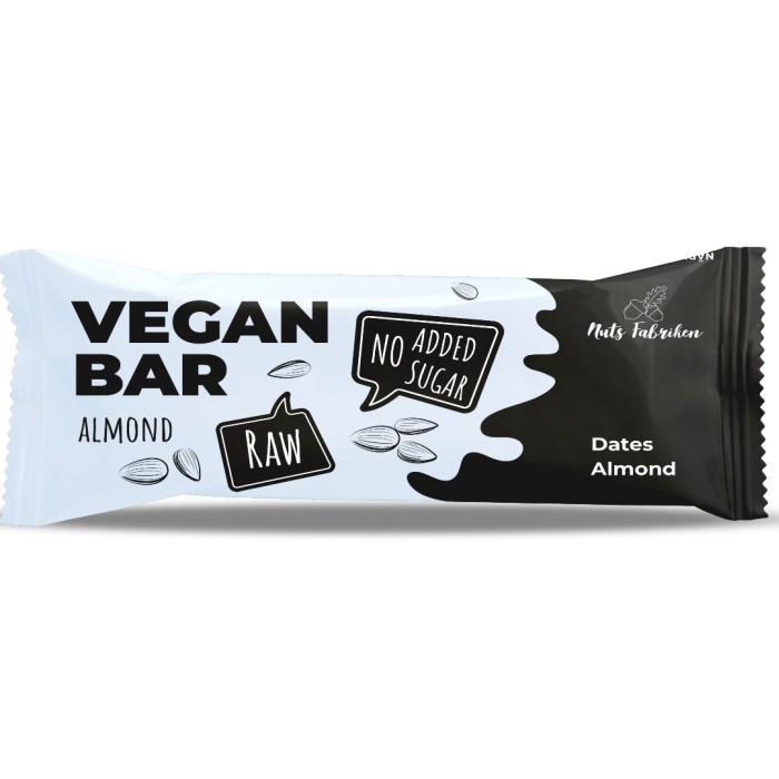 Vegan Bar Almond från Nuts Fabriken är en naturlig energibar som ger dig lite extra energi i vardagen. Baren är gjord på dadlar, mandelsmör och mandlar. Den innehåller inte något tillsatt socker, bara sockerarter från naturliga ingredienser.