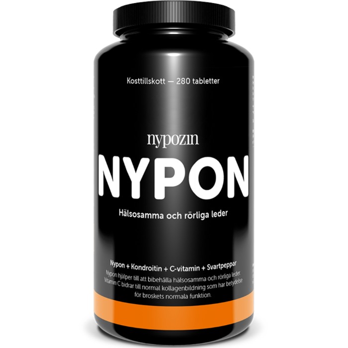 Nypozin är ett kosttillskott med strandnypon, kondroitin och Ester-C. Ester-C är en patenterad C-vitamin från kalciumaskorbat. Kondroitin utvinns ur brosk från nötkreatur.