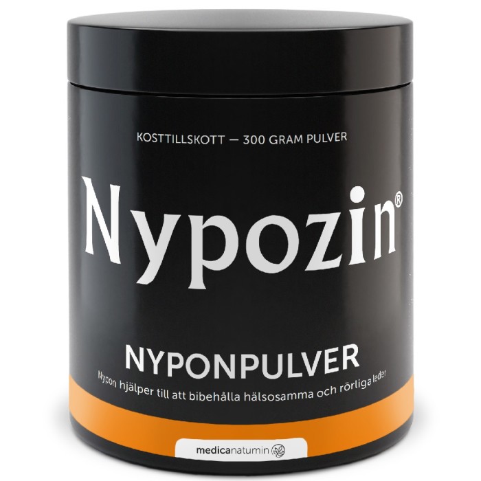 Nypozin innehåller nyponpulver samt nyponextrakt. Nypozin pulver innehåller vitamin C som bidrar till normal kollagenbildning som har betydelse för en normal broskfunktion och till att minska trötthet och utmattning.