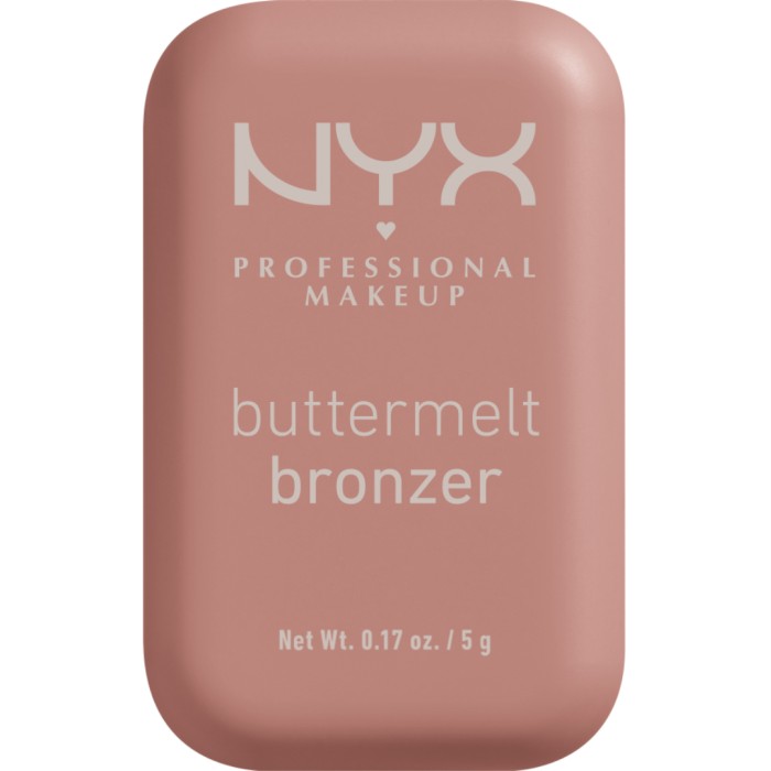 NYX Professional Makeup Buttermelt Bronzer är en bronzer som är mjuk som smör i konistensen. Bronzern ger dig en solkysst look hela dagen, smälter in i huden och ger en silkesmjuk finish med fin lyster. Innehåller bland annat mango-, shea- och mandelsmör. Trots den smöriga konsitensen känns bronzern väldigt lätt på huden och huden känns inte fet.