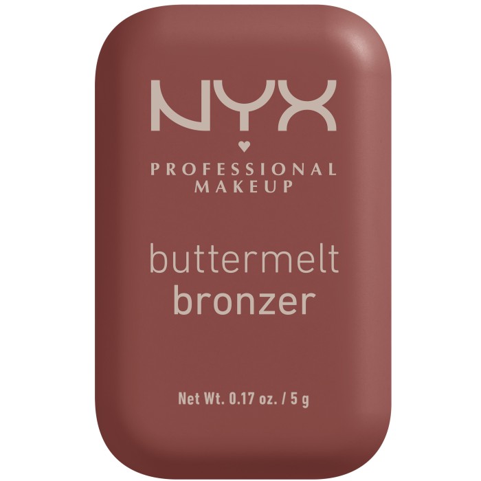 NYX Professional Makeup Buttermelt Bronzer är en bronzer som är mjuk som smör i konsistensen. Bronzern ger dig en solkysst look hela dagen, smälter in i huden och ger en silkesmjuk finish med fin lyster. Innehåller bland annat mango-, shea- och mandelsmör. Trots den smöriga konsistensen känns bronzern väldigt lätt på huden och huden känns inte fet.