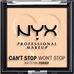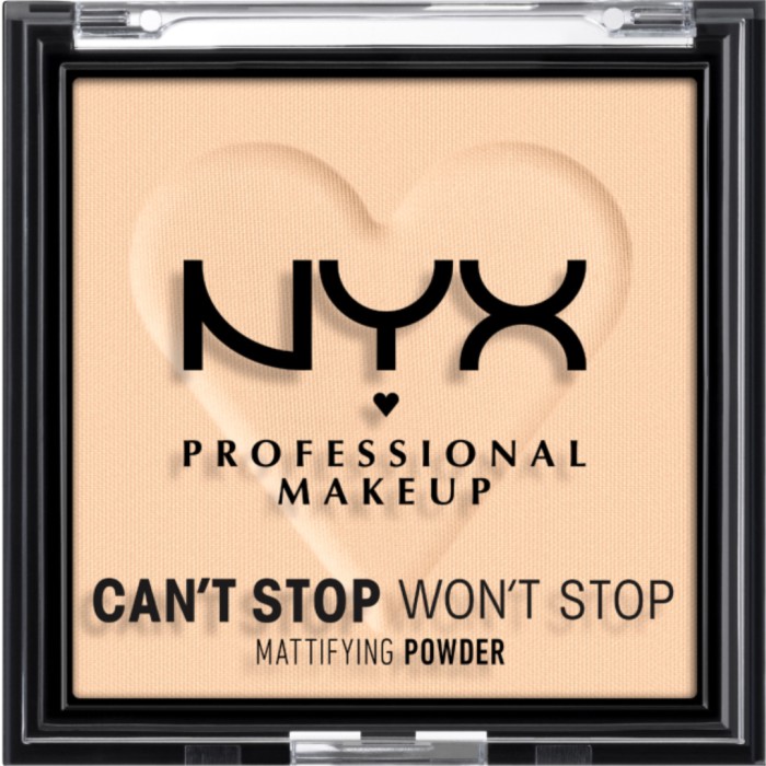Can't Stop Won't Stop Mattifying Powder från NYX Professional Makeup ger omedelbart resultat och minimerar glans och oljig hud. Ger en slät och matt finish på huden som varken känns torr, klumpar sig eller ser askig ut.