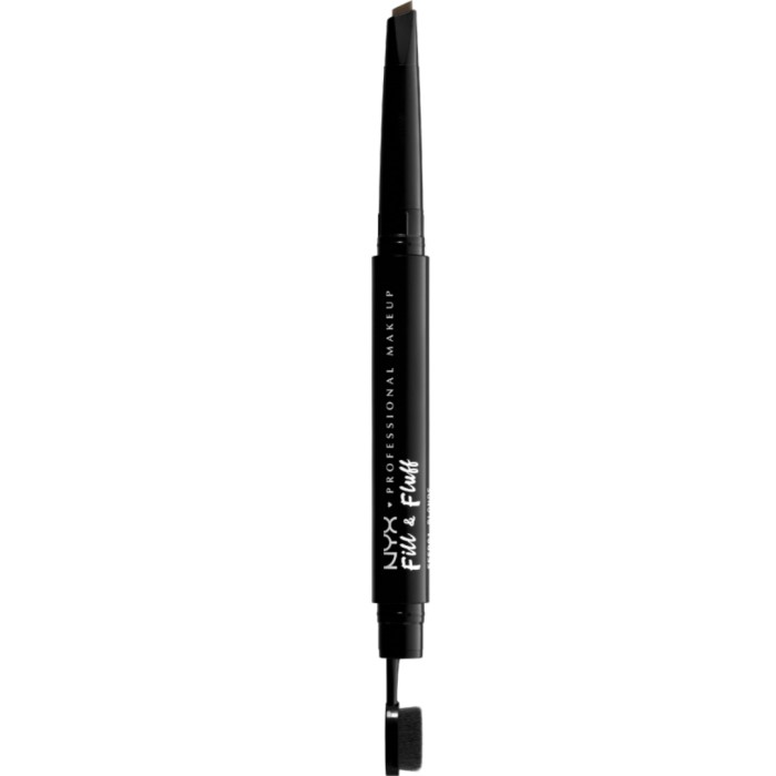NYX Professional Makeup Fill & Fluff Eyebrow Pomade Pencil är en dubbelsidig ögonbrynspenna. Pennan har en färgad, mjuk vaxpomad i ena änden och en paddelformad miniborste i andra änden för att jämna ut och fluffa upp.