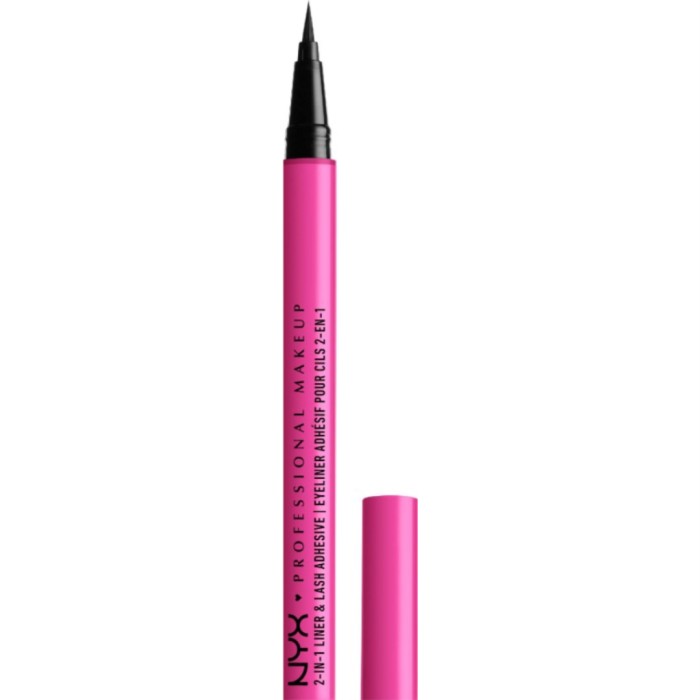 NYX Jumbo 2-In-1 Liner & Adhesive kan användas både som eyeliner och som fäste för NYX lösögonfransar. Har en superprecis filtpenna för jumboeffekt och intensiva pigment för jumboattityd - och är lätt att använda.