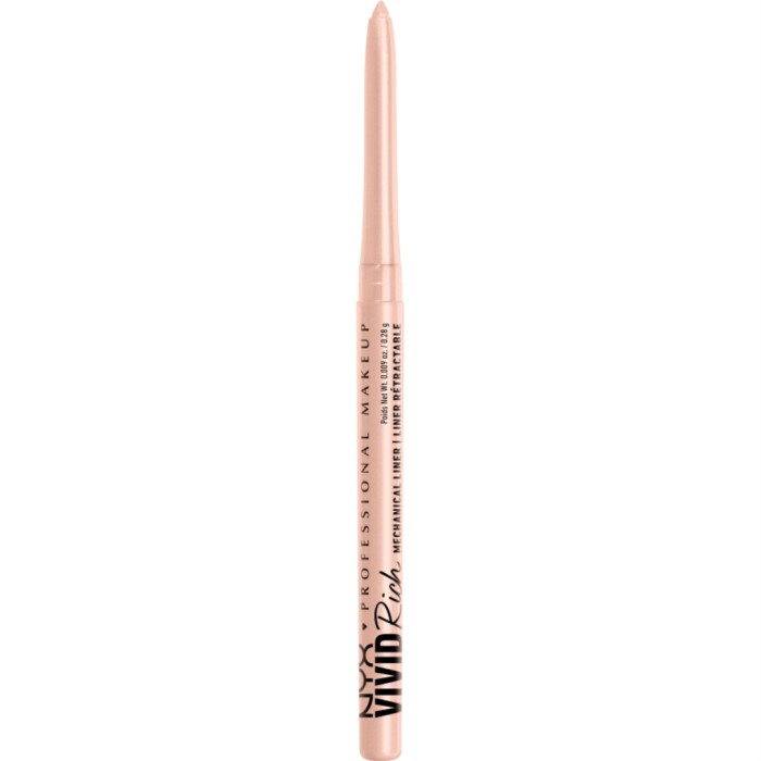 Vivid Rich Mechanical Liner från NYX Professional Makeup är en eyeliner som finns i flera rika färger med matt, skimrig eller metallisk finish. Mechanical Liner kommer i ädelsteninspirerade färger från Spicy Pearl och Amber Stunner till Aquamarine Dream för att ge en livfull ögon-look. Pennan är enkel att skruva och behöver inte vässas. Vegansk (utan ingredienser av animaliskt ursprung).