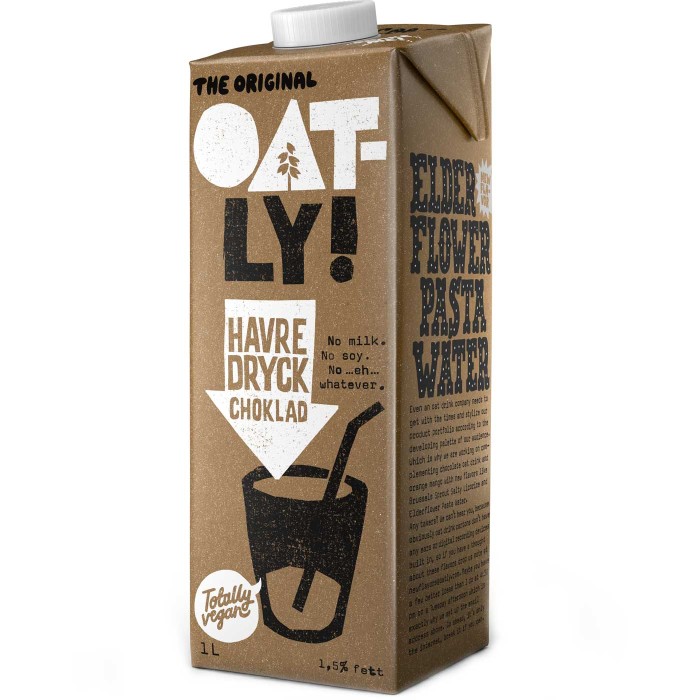 Oatly Havredryck Choklad är gjord på havre och UTZ-certifierad* kakao. Drycken har en fetthalt på 1,5% och är kalcium- och vitaminberikad.