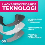 o.b.® menstrosor har ett topplager närmast huden som består av 100% ekologisk bomull som andas, och transporterar bort blod på några sekunder för att hålla dig torr. Den absorberande kärnan kapslar in blodet i upp till 12 timmar. Ett vattentätt lager som andas och förseglade sidosömmar ger ett pålitligt läckageskydd.
