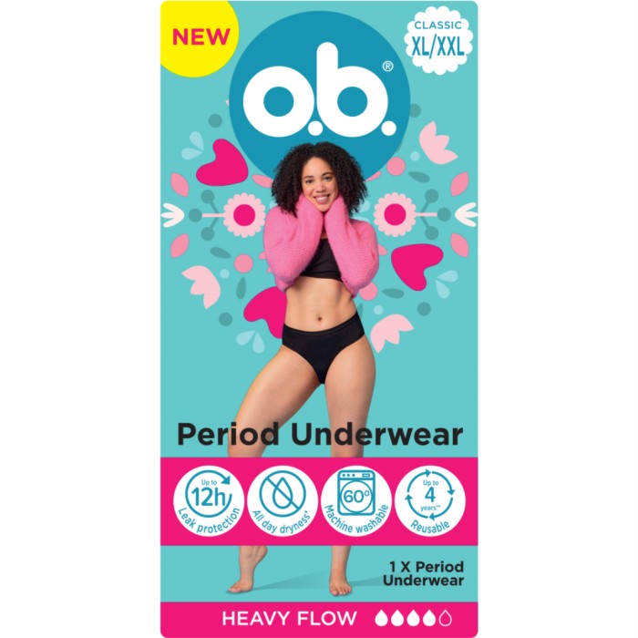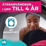 o.b.® Period Pants menstrosa har en läckageskyddande teknologi och ger skydd i upp till 12 timmar. Menstrosan kan tvättas i tvättmaskin i 60°C och återanvändas i upp till 4 år*.