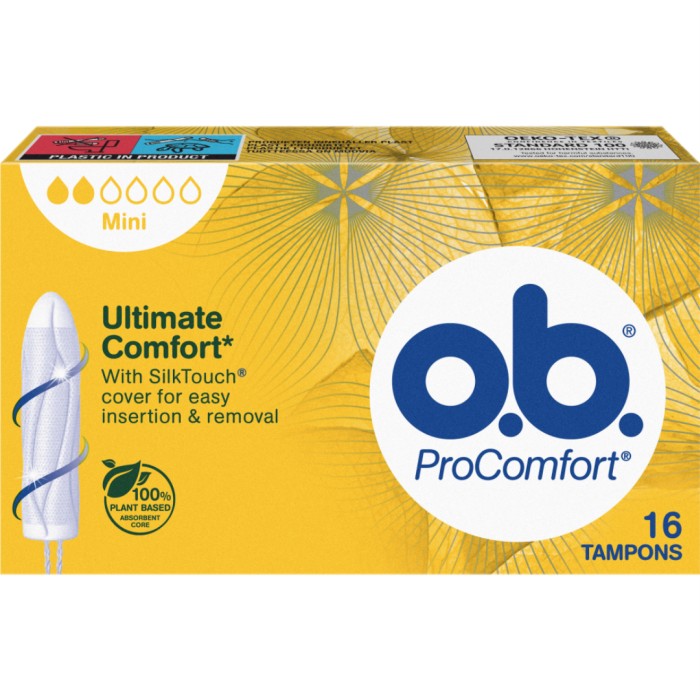 OB Tampong ProComfort Mini är gjord för dig som använder tampong för första gången, eller som har lite mens. OB Tampong ProComfort Mini är liten och smal med en avsmalnande topp samt har ett lent SilkTouch-hölje som gör att den är lätt att få på plats. OB Tampong ProComfort Mini passar också ofta bra i slutet av mensen då du blöder mindre. Tack vare de vridna kanalerna samlas mensen effektivt upp inuti tampongen och skyddar längre från läckage.