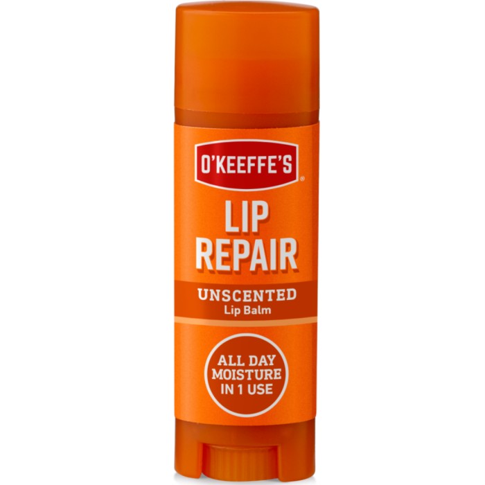 Garanterad lindring för extremt torra och spruckna läppar. Om du letar efter ett läppbalsam för intensiv behandling och som håller spruckna läppar borta, då är O'Keeffe's Lip Repair det perfekta valet! Vår mycket effektiva formulering återfuktar, lugnar och hjälper till att reparera torra läppar så att de känns mjuka, lena och följsamma hela dagen. Håller läpparna återfuktade i upp till 24 timmar. Det är kliniskt bevisat att O'Keeffe's Lip Repair fungerar efter bara en applikation. Det stämmer – du behöver inte applicera om och om igen. O'Keeffe's Lip Repair håller läpparna återfuktade och mjuka även efter intag av mat och dryck!