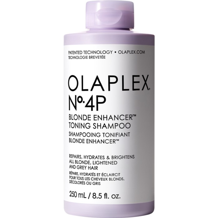 Olaplex No.4P Blond Enhancer Toning Shampoo är ett vårdande silverschampo som neutraliserar oönskade gula toner och ger en kall och klar nyans. No.4P Blond Enhancer silverschampo har en vårdande formulering som stärker, mjukgör och tillför glans. Schampot innehåller Olaplex patenterade teknologi som stärker håret inifrån och bidrar till ett hälsosamt hår. Vegansk.