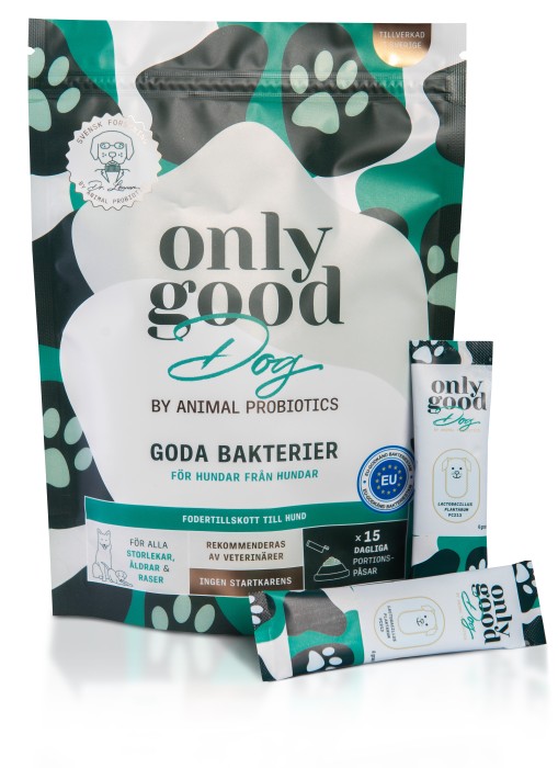 OnlyGoodDog är ett fodertillskott till hund med ingredienser som kan bidra positivt till hundens tarmflora. Kan ges till alla hundar oavsett storlek, ålder och ras. Kan ges varje dag.