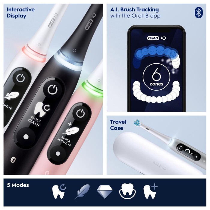 - Oral-B:s iO-teknik för en professionellt ren känsla och skonsam borstningsupplevelse