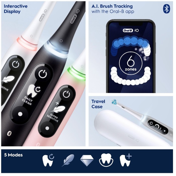 - Oral-B:s iO-teknik för en professionellt ren känsla och skonsam borstningsupplevelse