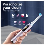 Oral-B iO 9 använder en avancerad teknik för 100 % mer plackborttagning på bara en vecka och 300 % mer plackborttagning längs tandköttskanten jämfört med en vanlig manuell tandborste. Ger vitare tänder genom att ta bort ytliga missfärgningar och har ett tandläkarinspirerat runt borsthuvud.