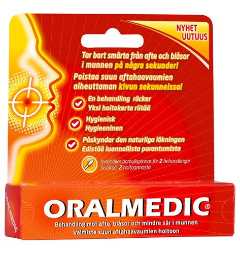 Oralmedic är en unik behandling mot afte, blåsor och mindre sår i munnen. Tar bort smärtan från blåsor med en enda behandling! Oralmedic är hygienisk och påskyndar den naturliga läkningen.