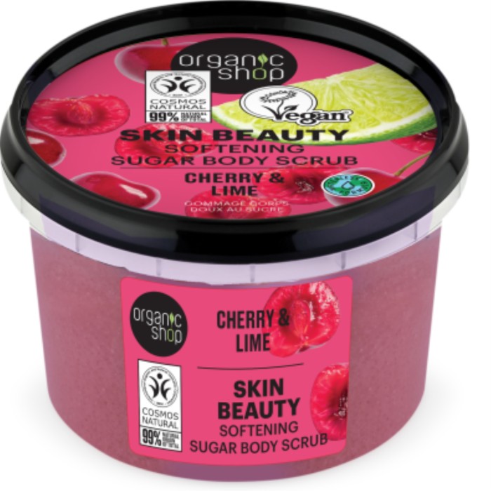 Softening Sugar Body Scrub Cherry & Lime från Organic Shop är en kroppsskrubb med körsbär och lime. Denna peeling med söta körsbär och frisk lime har en uppiggande doft och är berikad med ekologisk körsbärsolja och limeextrakt, som tillsammans med naturligt socker exfolierar huden och gör huden mjuk och smidig. Skrubben ger en effektiv rengöring samtidigt som den tillför fukt.