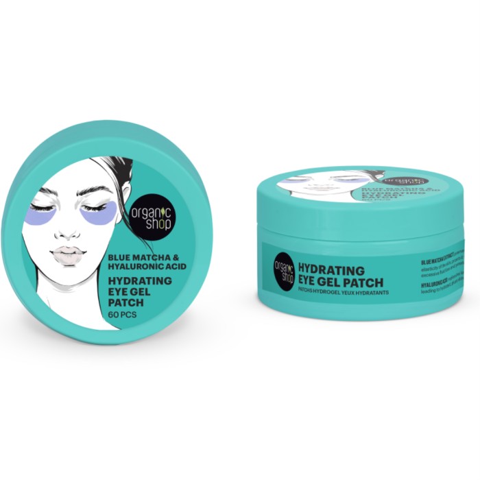 Organic Shop Hydrating Eye Gel Patch Blue Matcha & Hyaluronic Acid är ögonpads med blå matcha och hyaluronsyra. Dessa pads har ett unikt innehåll med fuktgivande hyaluronsyra och anti-age-verkande blå matcha för att mjuka upp huden och mjuka upp fina linjer för en mer ungdomlig hud under ögonen. Du kan använda Organic Shop Eye Gel Patches som en del av din dagliga rutin för att vårda den tunna huden under ögonen.