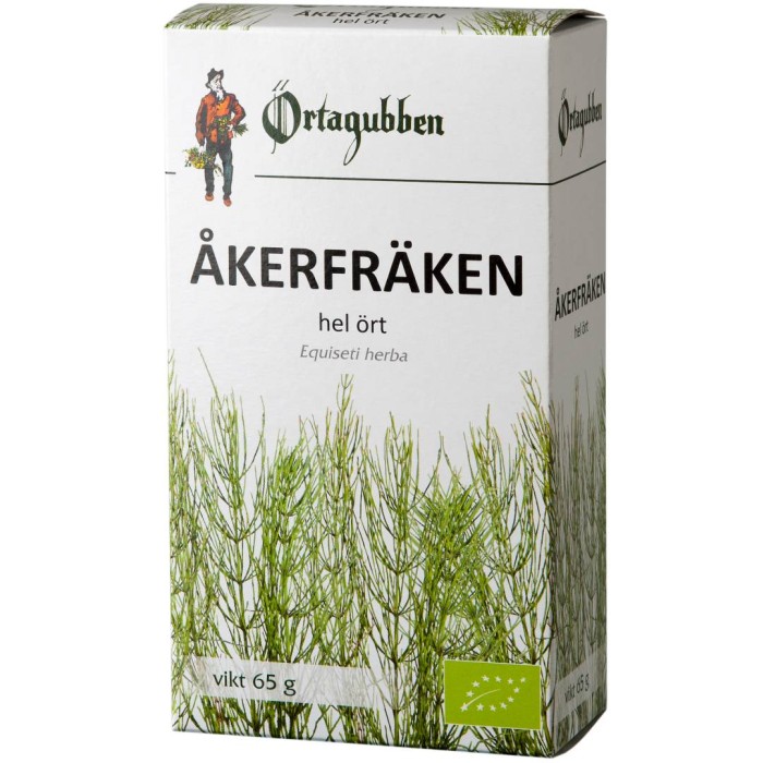 Ekologisk odlad åkerfräken, hel ört, (Equiseti herba) från Örtagubben. Låt 1-2 tsk ört dra i varmt vatten till en kopp örtte.