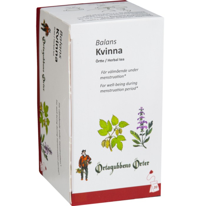 Örtagubben Balans Kvinna är ett örtte med citronmeliss, rölleka, fänkålsfrukt, humlekottar och salviablad.