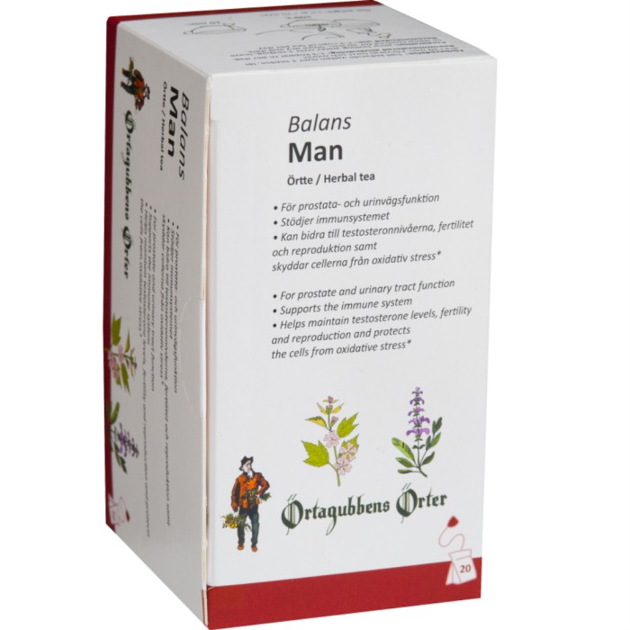 Örtagubben Balans Man är ett örtte med mjölkört, gullris, fermenterade mjölkörtblad, salviablad, läkemalvablad och zink.