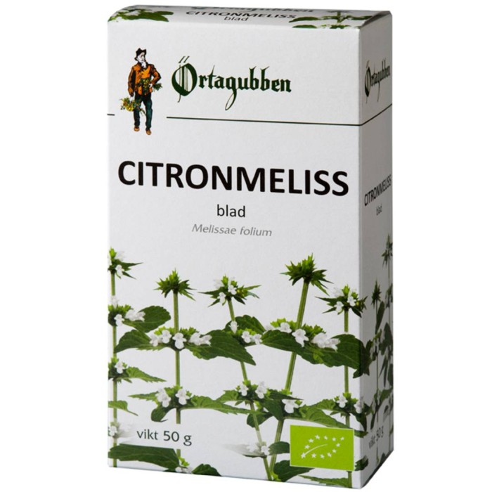 Örtte gjort på ekologiskt odlad citronmeliss (Melissa officinalis).