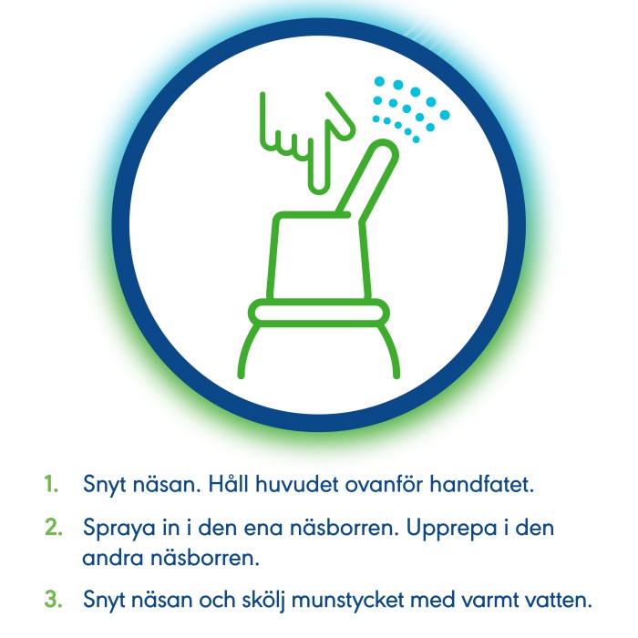 4. Om sprayen inte har använts på en längre tid; spraya en gång i luften före användning.