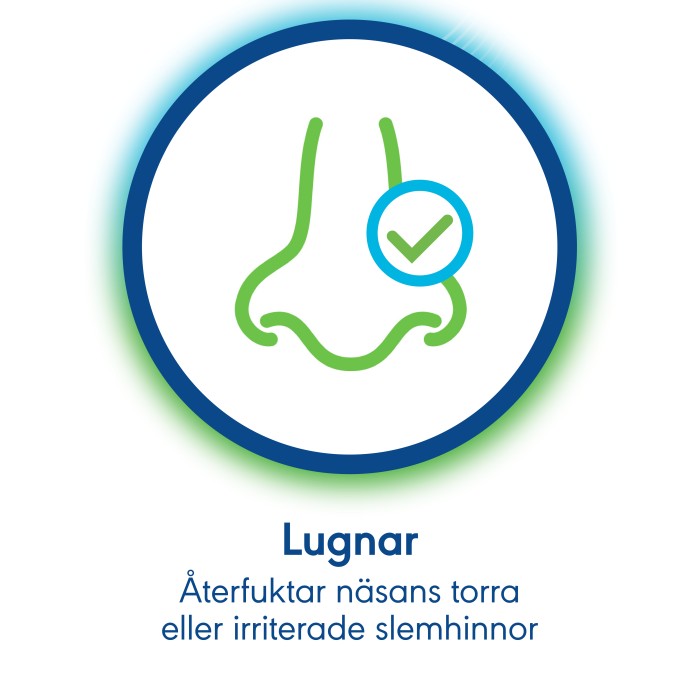 1. Snyt först näsan om det behövs. 2. Tvätta händerna noggrant före och efter användning av produkten. 3. Ta av skyddshatten från sprayen. 4. Om sprayen inte har använts på en längre tid, spraya en gång i luften före användning. Rengör sprayhuvudet under rinnande vatten och torka med papper om sprayhuvudet är blockerat. 5. - För barn som inte kan använda produkten själva: Lägg barnet på ryggen med huvudet åt den ena sidan, så vätskan rinner ut lättare (Fig. 1 i bruksanvisningen). - För barn & vuxna som kan använda produkten själva: Luta huvudet framåt över en handfat och luta huvudet åt ena sidan, så det är så horisontellt som möjligt (Fig. 2 i bruksanvisningen).