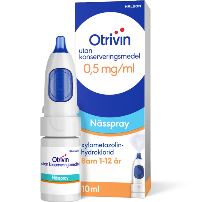 Otrivin utan konserveringsmedel, nässpray, lösning 0,5 mg/ml 10 ml