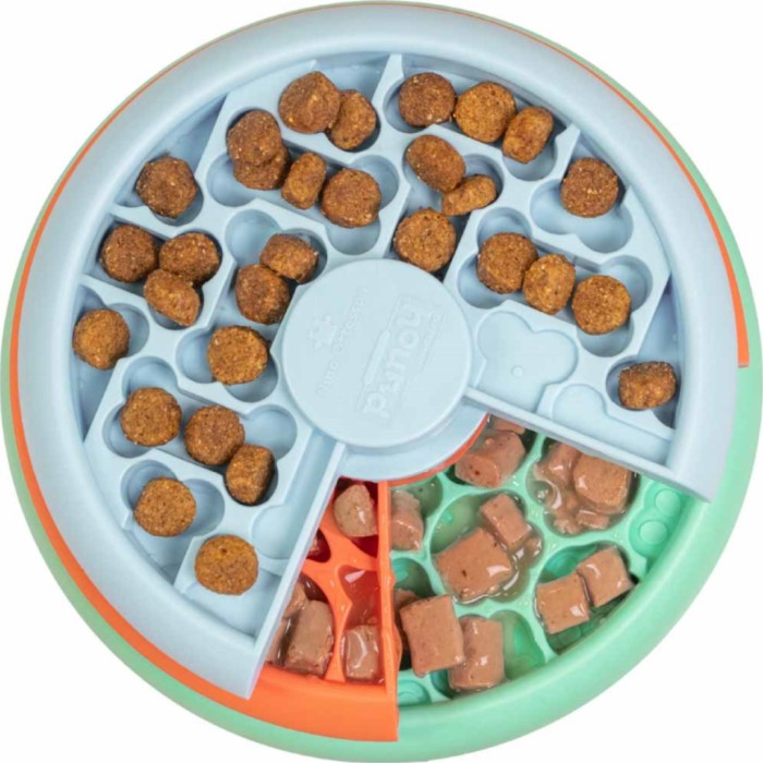 Puppy Lickin' Layers är ett nivå 2 hundpusselspel från Nina Ottosson av Outward Hound. Hunden måste navigera genom de tre lagren av matfack genom att snurra varje lager för att få fram godbitarna.