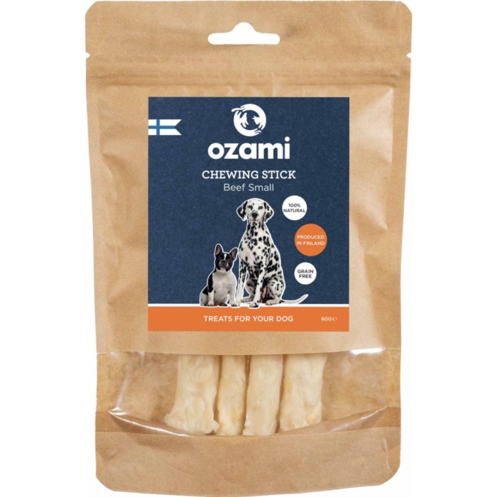 Ozami Chewing Stick Beef 14 cm är tuggsticks till hund gjorda på 100 % råhud. Huden är i sig mager. Innehåller inga tillsatta färgämnen, konserveringsmedel eller smakämnen.