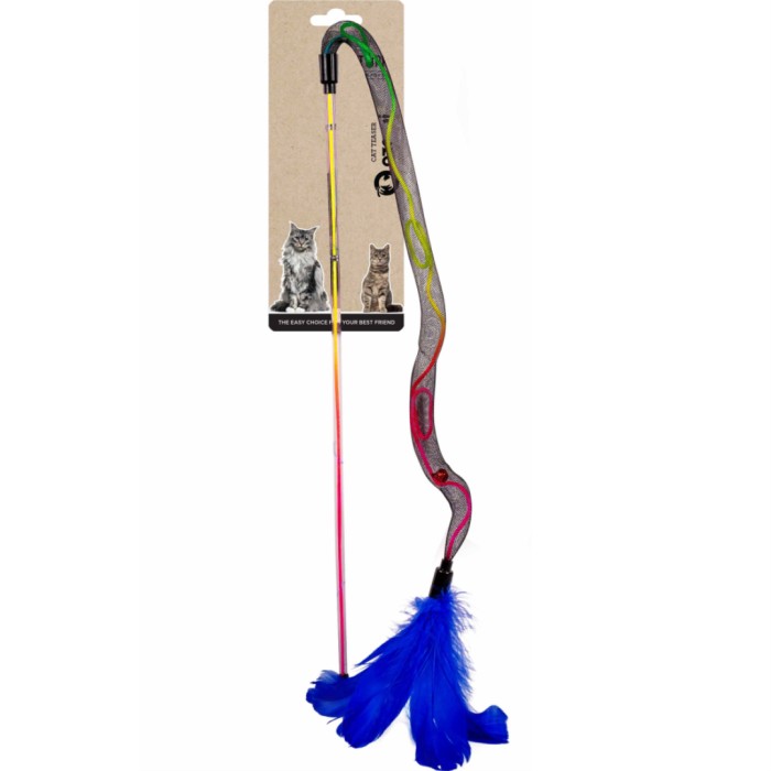 Kattvippa för att stimulera kattens naturliga jaktinstinkter och hålla den aktiv. Den mjuka fjädern och det långa skaftet gör det enkelt att engagera katten i lek.