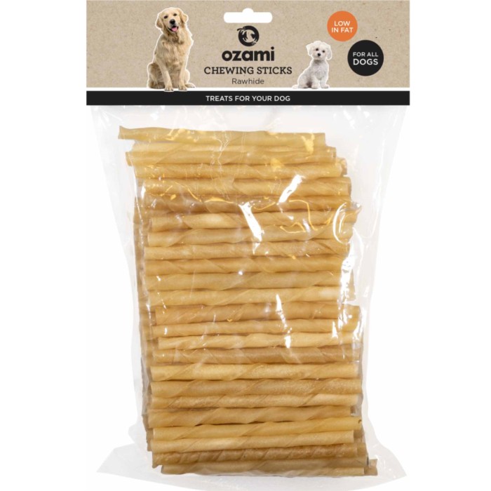 Ozami Tuggsticks 12 cm är runda tuggsticks för hundar, tillverkade av 100 % naturlig råhud. Hjälper till med att tillfredsställa hundenss naturliga behov av att tugga.