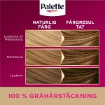 Palette Intensive Creme Coloration 7-0 Mellanblond permanent hårfärg med 100 % gråhårstäckning. Den fylliga olje-i-kräm-formuleringen tränger in i håret med högkoncentrerade pigment för 100 % gråhårstäckning och ger långvarig färglyster fram till nästa färgning. Med en specialutvecklad fuktbevarande behandling som återfuktar håret på djupet och ger en silkeslen känsla. Den silikonfria formuleringen gör håret mjukare, mer lättkammat och ger oemotståndlig glans. Ingredienserna i denna Palette hårfärg är upp till 93 % av naturligt ursprung*. Kartongen är FSC-certifierad. Aluminiumtub och bruksanvisning kan återvinnas.
