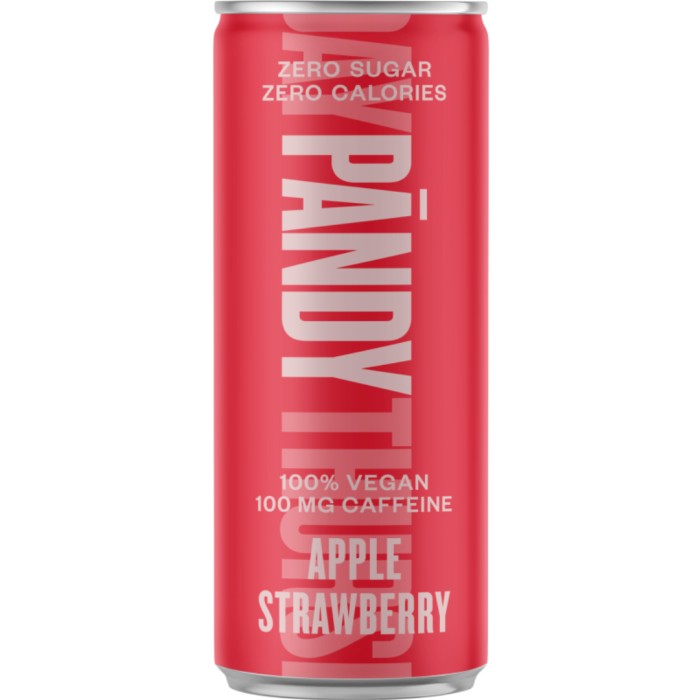 Pändy Apple Strawberry är en energidryck med smak av äpple och jordgubbar. Drycken är sockerfri och kolsyrad och innehåller 100 mg koffein. Innehåller sötningsmedel.